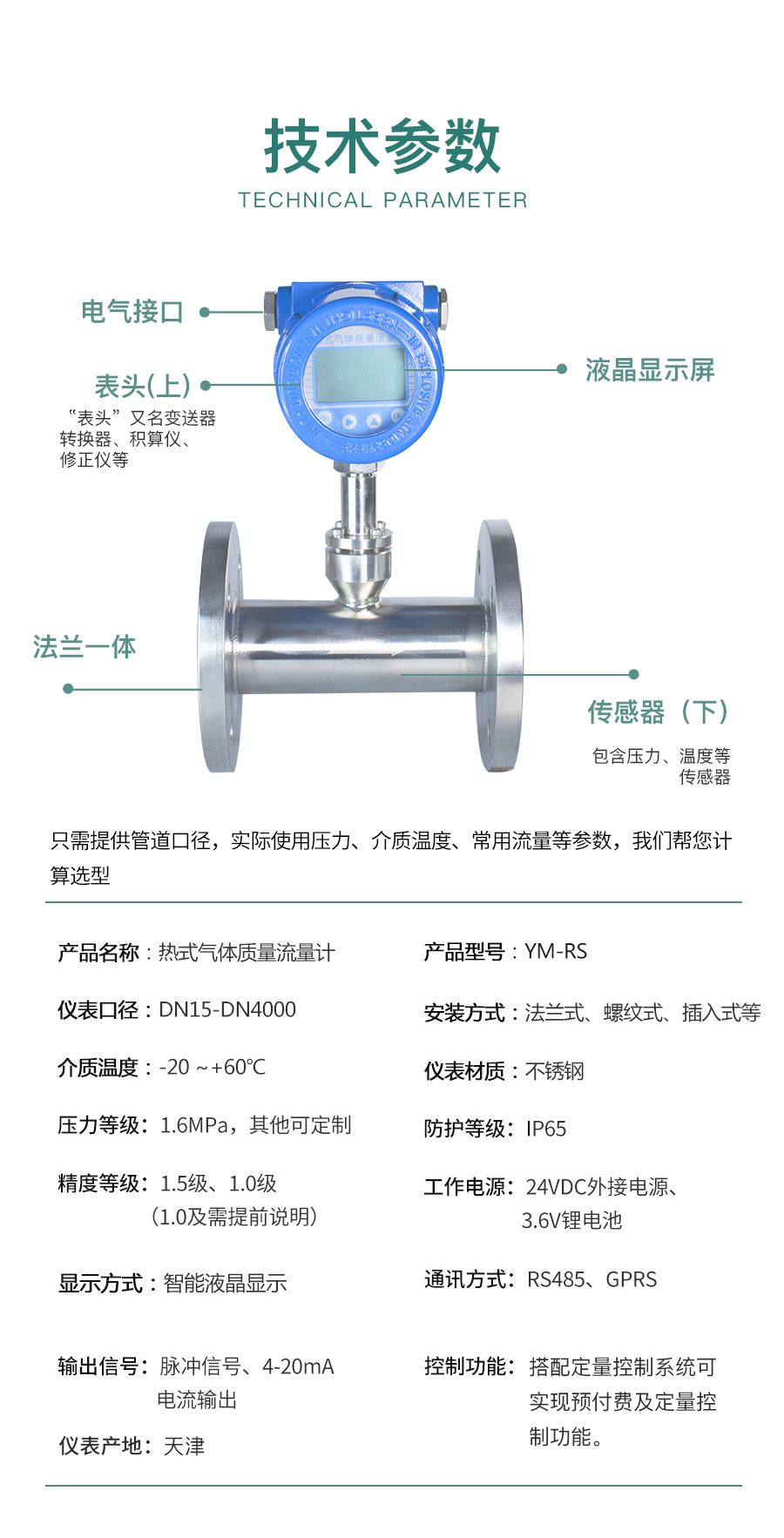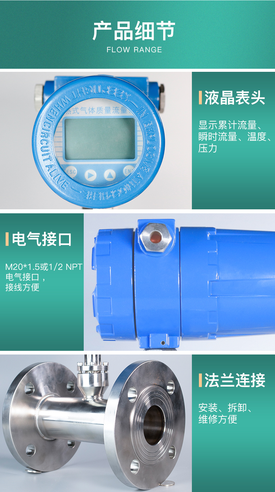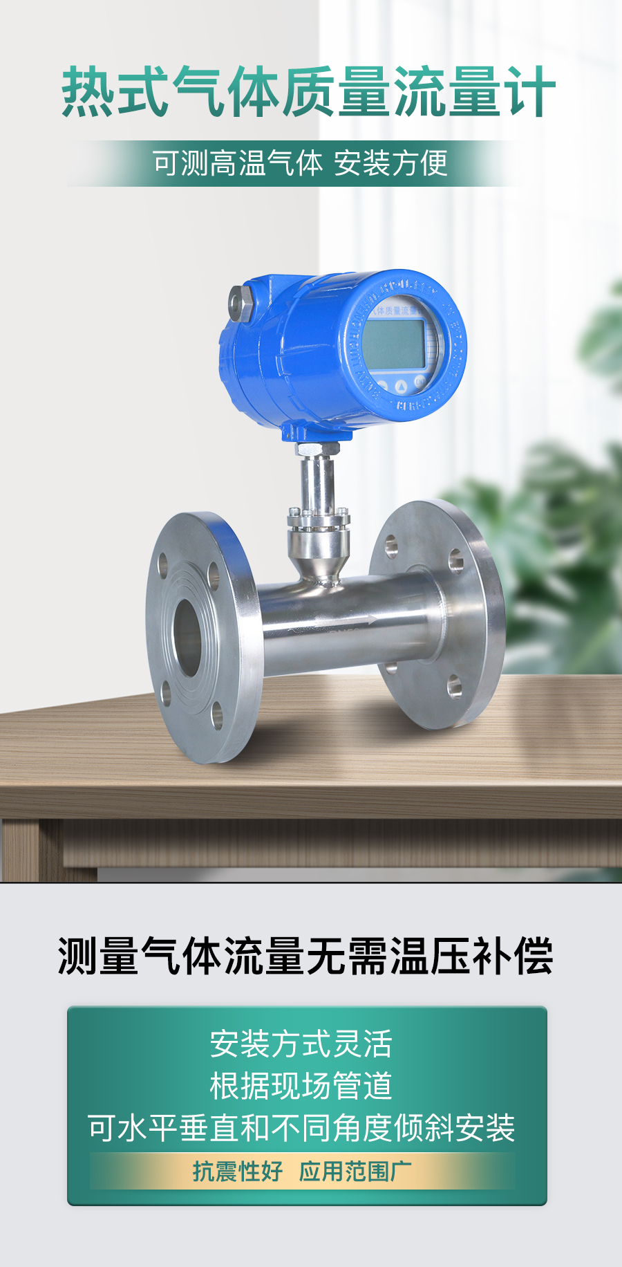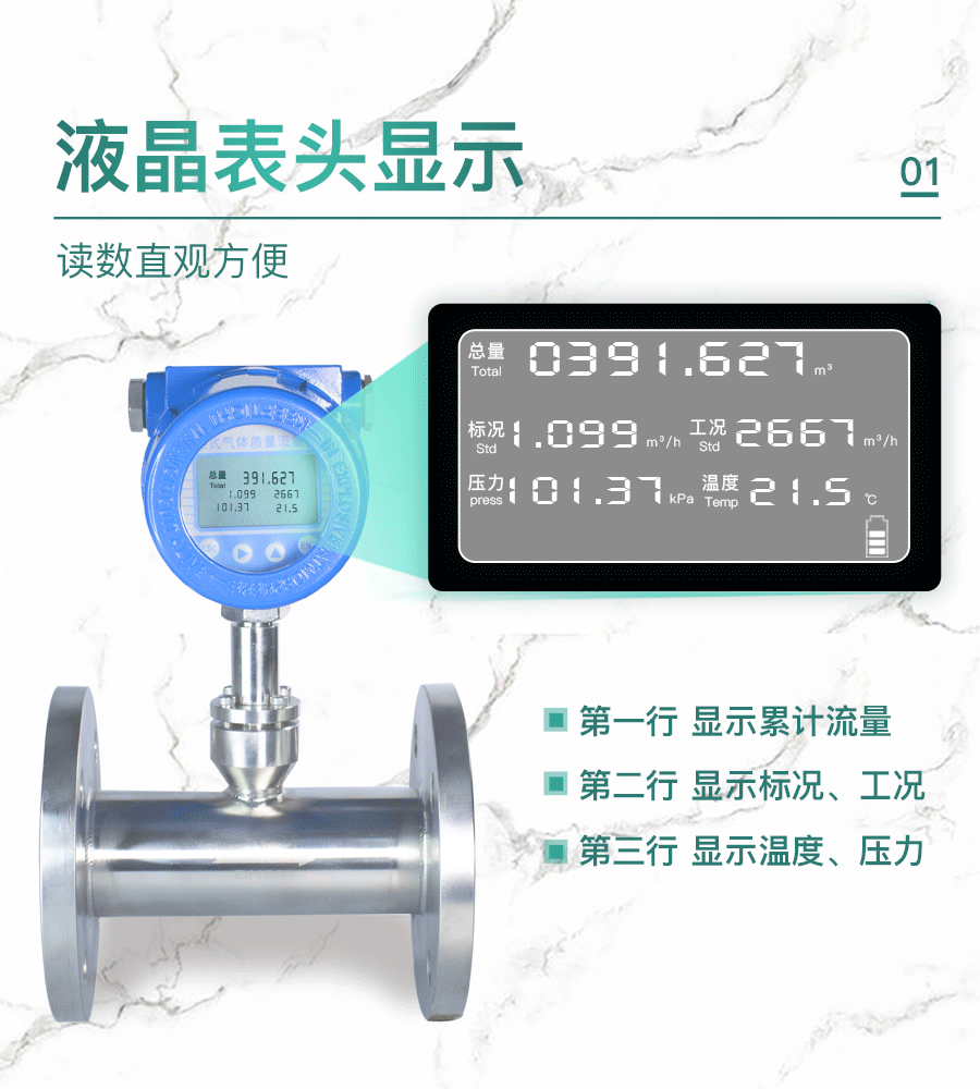 热式气体质量流量计是基于热扩散原理而设计的,该仪表采用恒温差法对气体进行测量。具有体积小、数字化程度高、安装方便,测量精度高等优点。