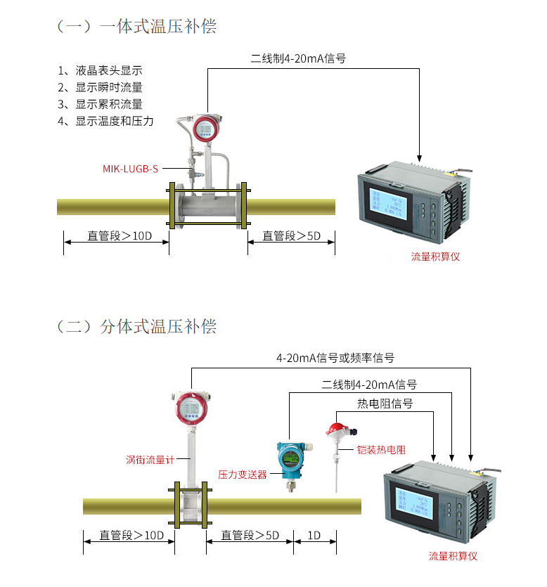 宜曼蒸汽计量系统是可分为一体式温压补偿以及分体式温压补偿。可实现对管道蒸汽用量过程的监控。结构如图所示。